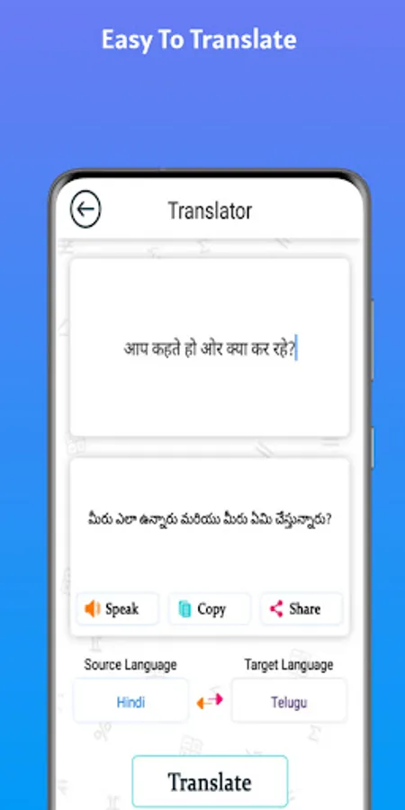 Bidirectional Translation: Translate from Hindi to Telugu or vice versa with a simple tap. Our app offers seamless bidirectional translation, ensuring you can communicate effortlessly in both languages.