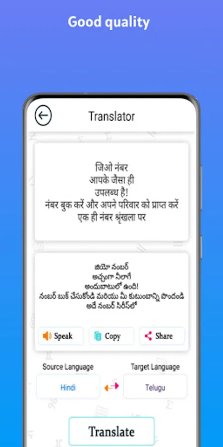 Precision Translation: Our app employs advanced translation algorithms to provide you with precise and trustworthy translations between Hindi and Telugu. Whether you need to translate a single word or a complex sentence, we've got you covered.