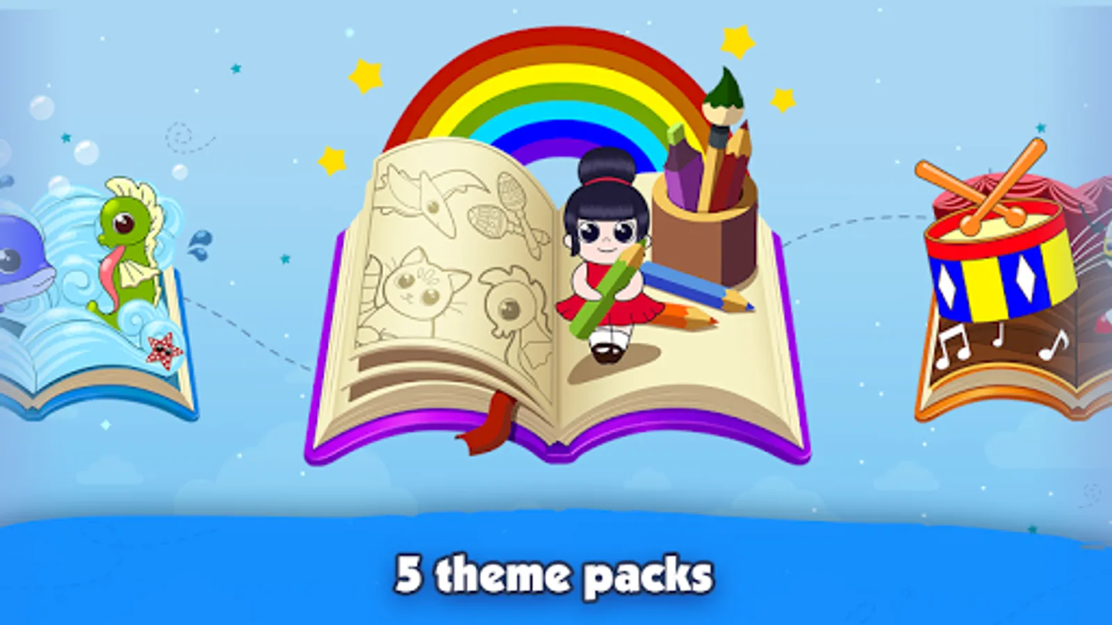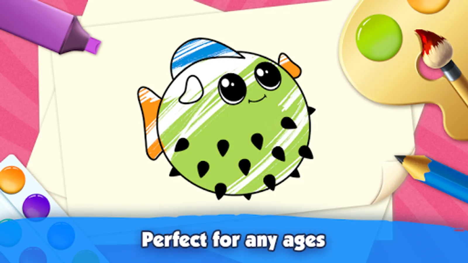 Our game “Coloring book for kids” is ideal for all: both kids and adults. And it doesn’t matter how well you draw: go beyond the edges, if you want, fill everything with color, draw freely! We will help you learn to draw even better, develop your artist talent in our app and at the same time play fun!