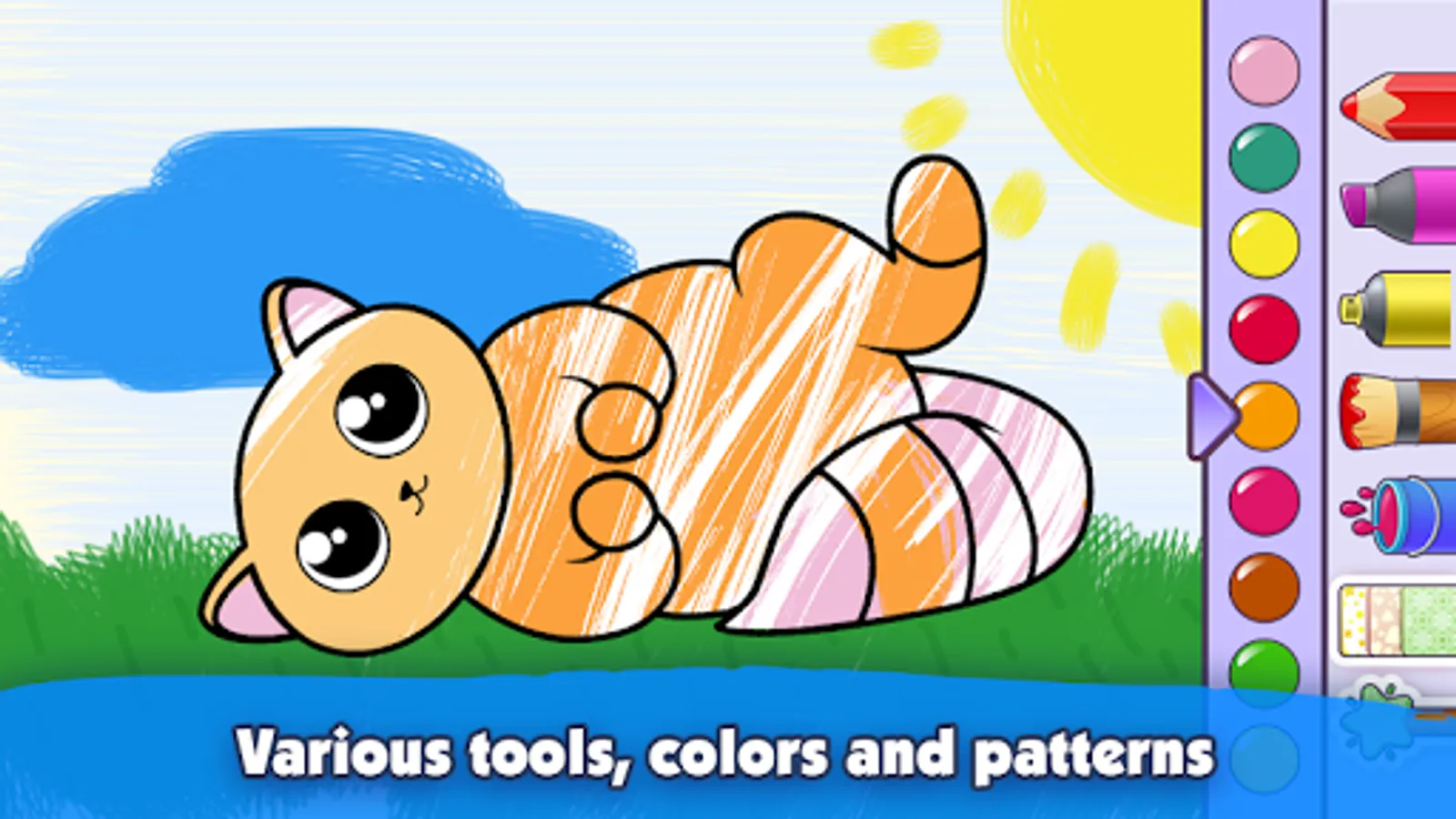 Which of us in childhood did not like to paint different paintings, fill them with color, “give life” to animals, nature and various fairy-tale characters? Now everyone’s favorite coloring books are available on your smartphone or tablet. Discover the interesting world of easy drawing for your happy children or for yourself with the game “Coloringbook for kids”!