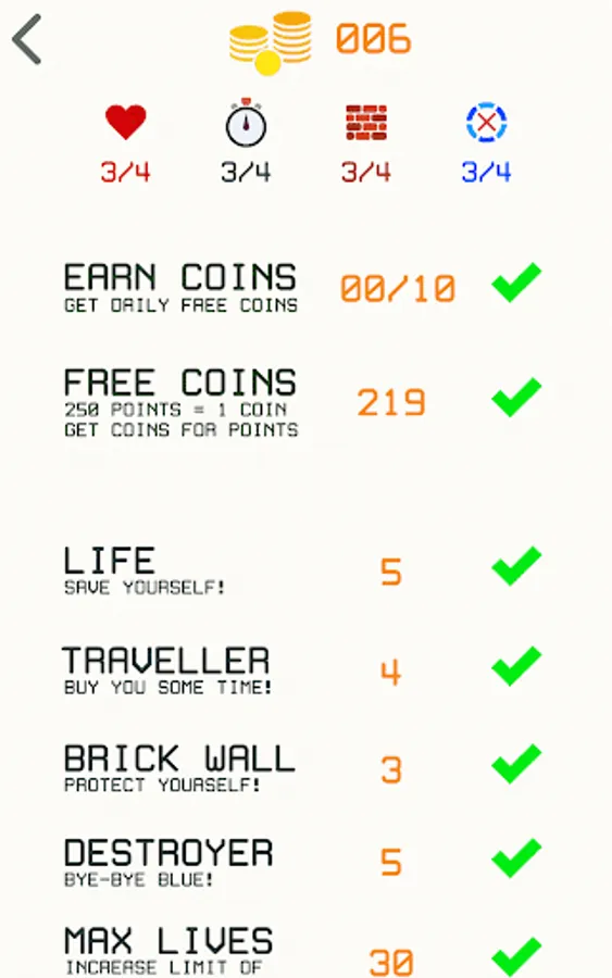Your have 4 lives you can use. They refill after some time, but be cautious - once you have no lives left, you will not get any points or achievements! You have been warned!