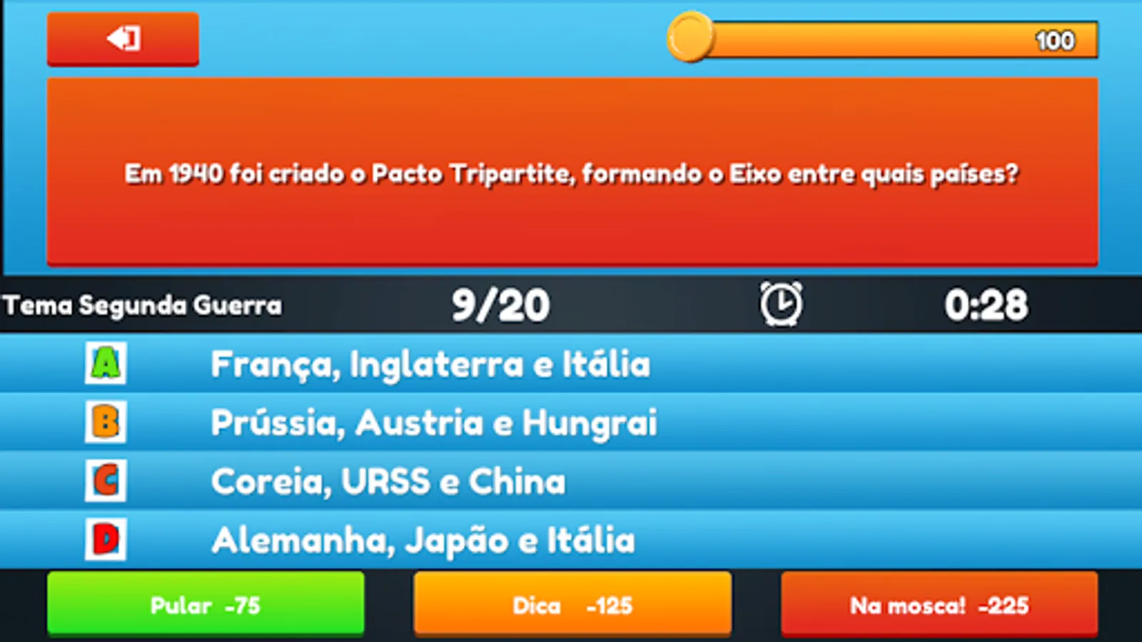 The History Quiz is a game developed based on questions based on the content charged in the assessments of human sciences and their technologies, tests such as the National High School Exam (ENEM), UERJ, PISM UFJF and other entrance exams and school tests.