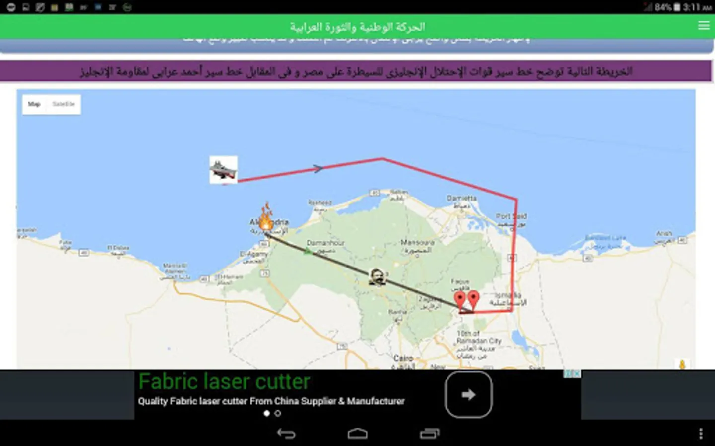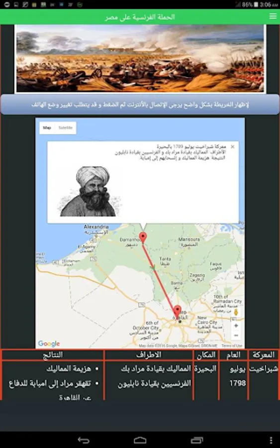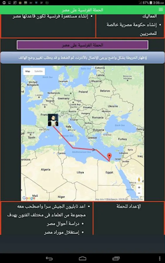 1. Develop historical information Kmsarh French expedition army and the battles between the French and the Mamelukes and march Orabi Army and the British Army when he occupied Egypt and lots and lots of Useful Information on the Google Maps.