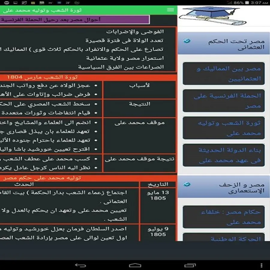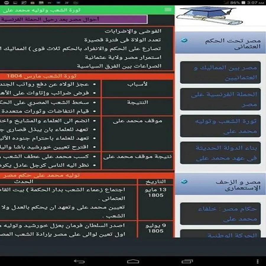 This application summarizes the history of the students at the third preparatory grade, where the application contains a rich interactive materials to prove the information in the mind of the student, such as: