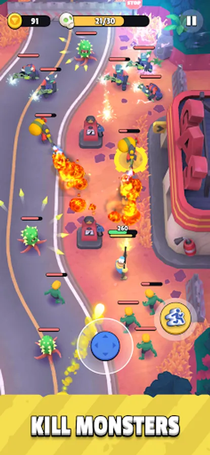 Fast-paced action game with simple controls and a wide variety of heroes, weapons, levels and enemies in the colorful cartoon world.