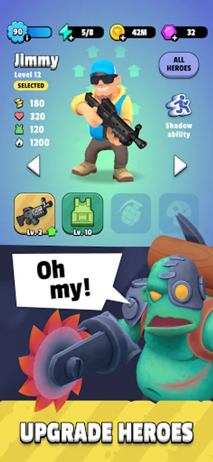 Take control over variuos mighty heroes with unique abilities!