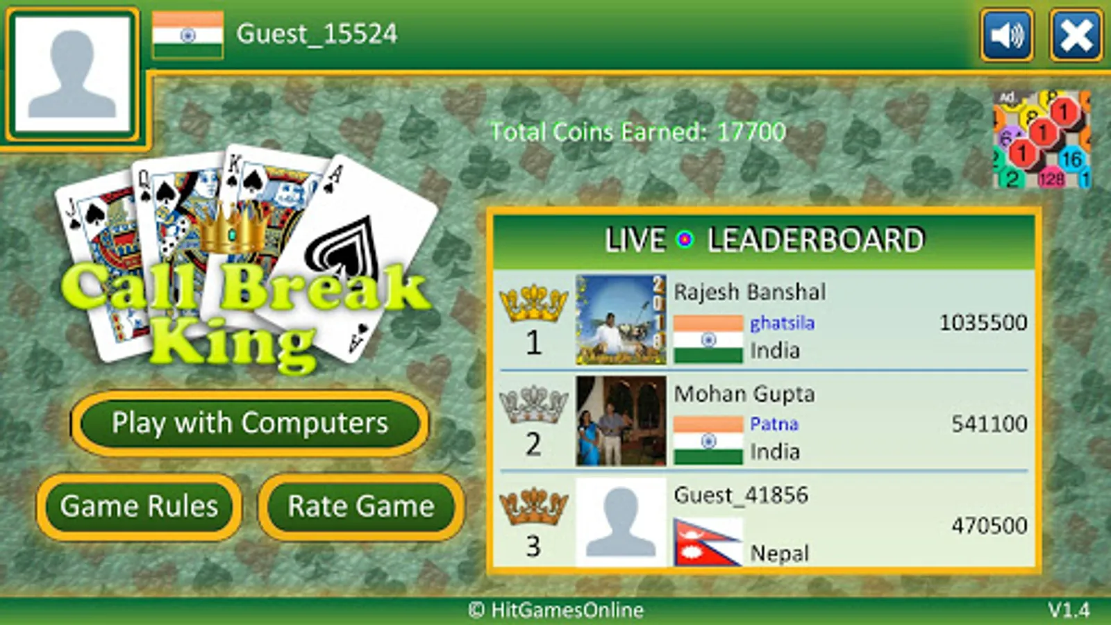 Call Break King is a strategic trick based card game which is very similar to Spades. Call Break King is a very popular game in India and Nepal. This Call Break King is also called Lakdi, Lakadi in India. This Call Break King is played by four players with a standard deck of 52 in which Spade is always the trump.