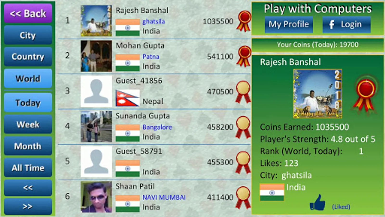 3) Player have to make a "Call" or "bid" for the number of hands he/she can capture, and the objective is to capture at least that many hand in a round, and try to break other players( which are 3 computers with artificial intelligence in this mode ) i.e. stop them from getting their Call.