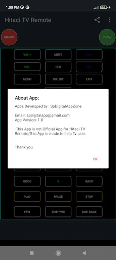 This app is not the official Remote Control For Hitachi TV app