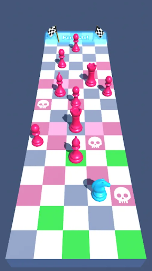 Solve quick chess puzzles, avoid traps and find your way to the finish line.