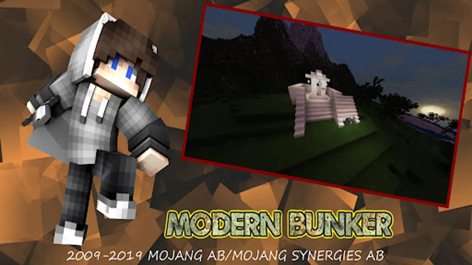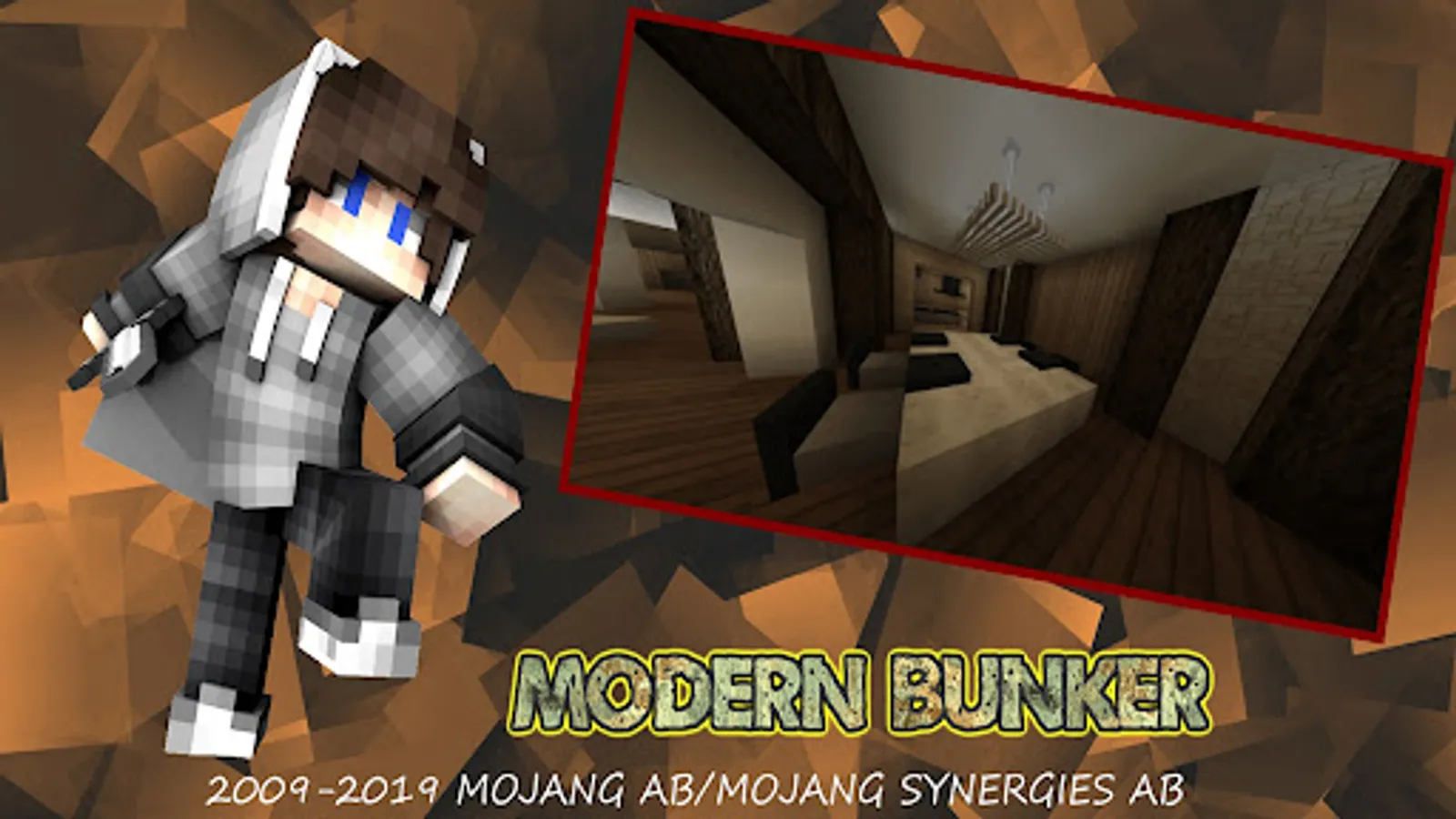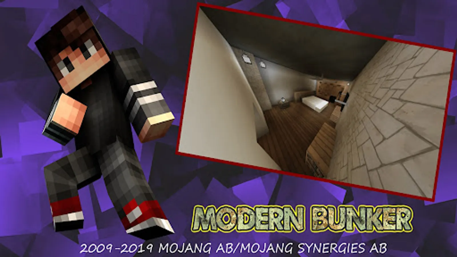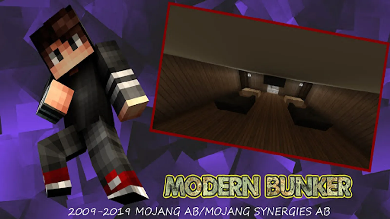 Also this Modern Bunker Map contains two another mods and maps to play in craft inside, such as: 2. More Food Mod ; 3. Guns Mod. This app contains 8 thematic skins and wallpapers about this mod and 8 casual skins and wallpapers from craft universe.