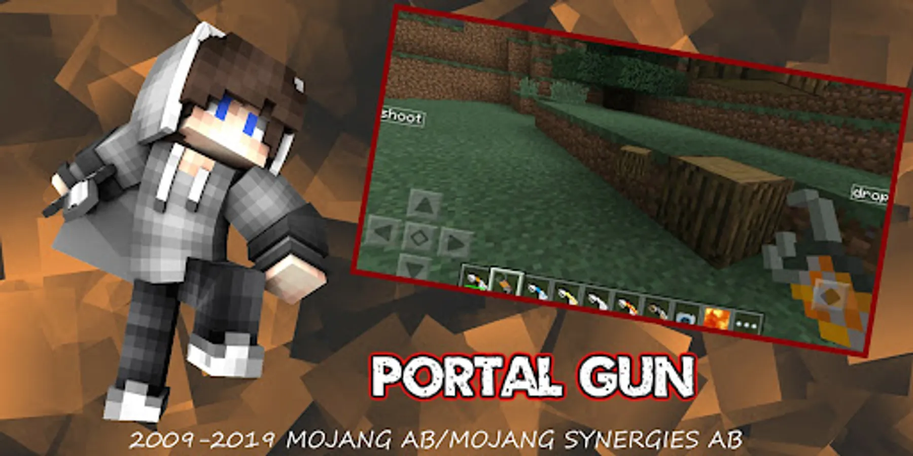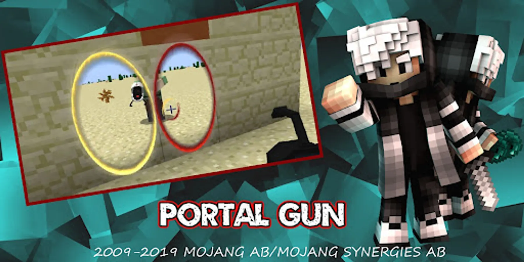Also this Portal Gun Mod contains two another mods and maps to play in craft inside, such as: 2. Siren Head Mod ; 3. Beyond The Portal Map. This app contains 8 thematic skins and wallpapers about this mod and 8 casual skins and wallpapers from craft universe.