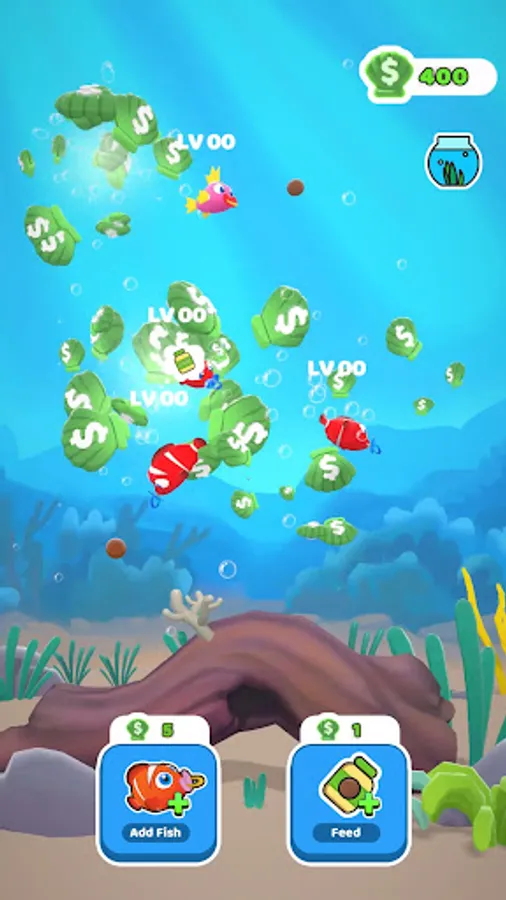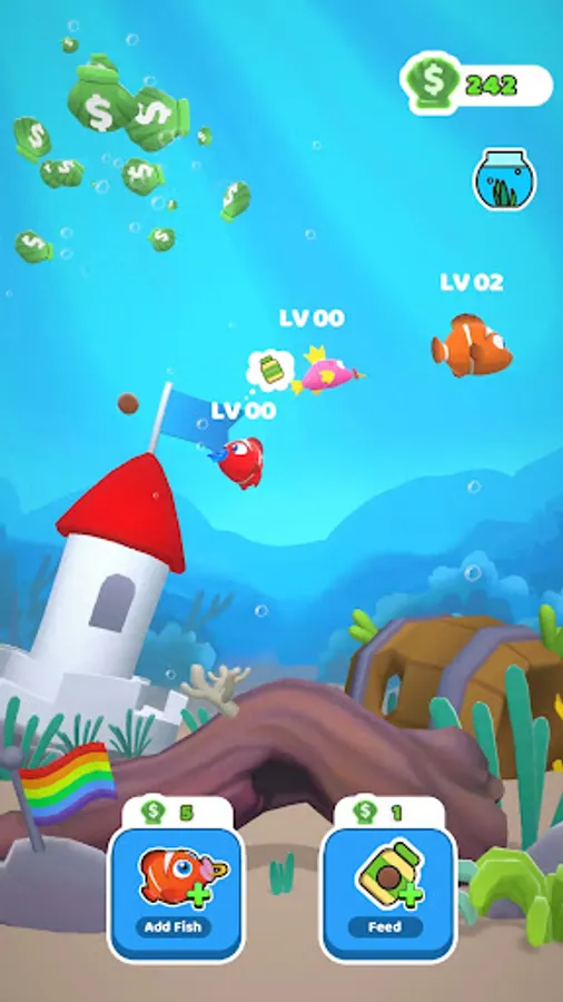Feed your fishes, merge them together to make them stronger and able to defend your Fish Village from sea predators!