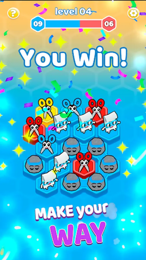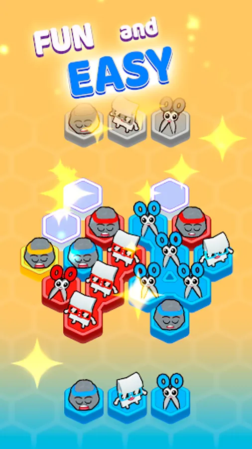 You've finally found the fun game you were looking for: Hex Conquest - Rock Paper Scissors Strategy Puzzle Game!