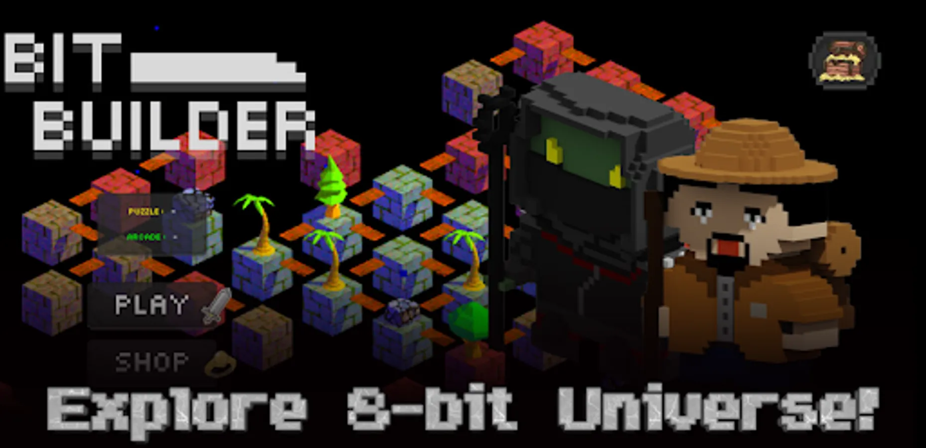 Bit Builder challenges you to gather building resources while exploring map. Bit Builder is fun and relaxing, made for old school gamers. Various characters, levels and items available! More content coming soon!