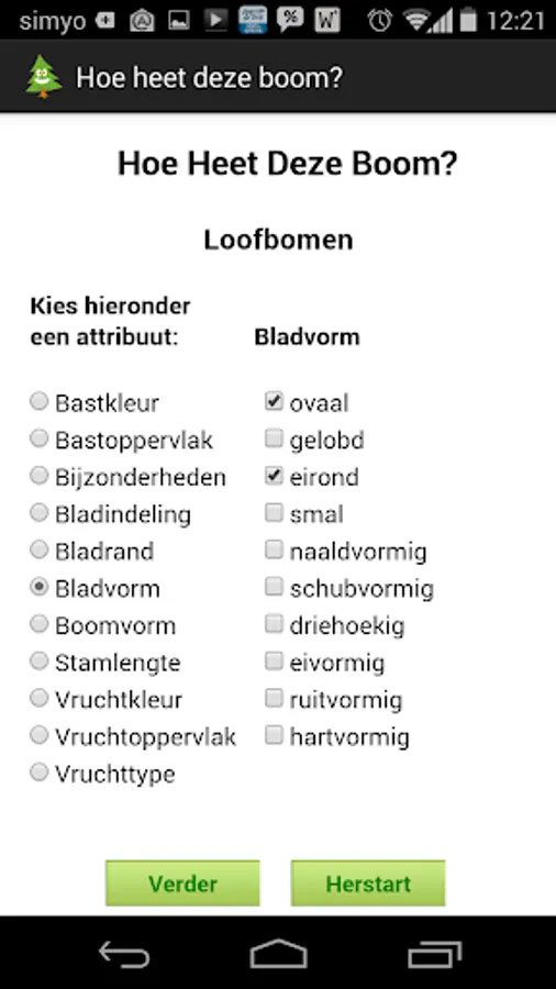 Identification of trees. You have to type anything and multiple responses for each category are possible.