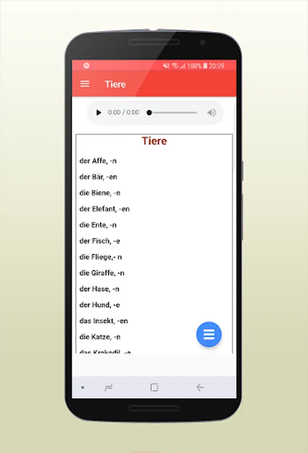 The Listening German Listen A1 Method for learning German vocabulary is designed to teach you as many new vocabulary in a short time. Due to the quiet relaxation music you are up to 3x more receptive than other learning methods. So you can memorize the German vocabulary better and make rapid progress. Just try it out!