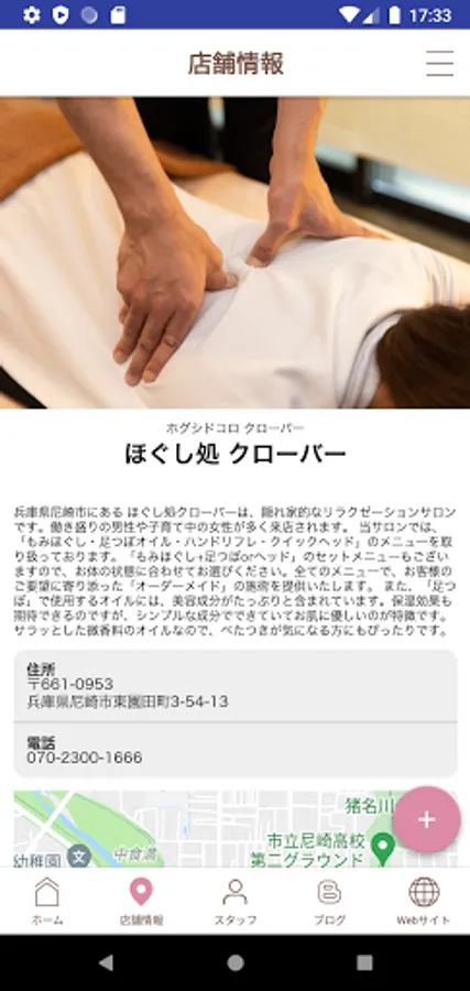 The map of the store is displayed and it is linked with the map app, so you can easily find it even when you visit the store for the first time.