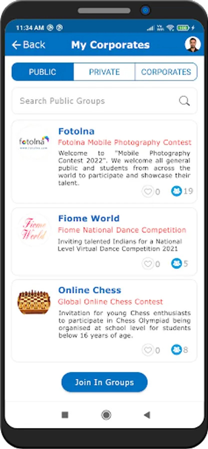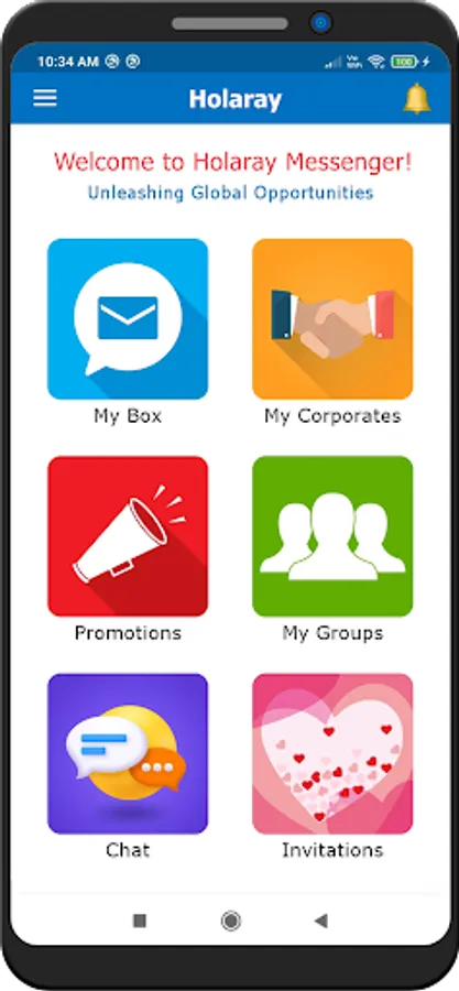This application is an online platform that enables the corporate, organization, business or individual, to engage with their customers, consumers, end users or clients. Holaray is an informative application that can be downloaded and used by the end users on their Mobile or Tablet from the application store in your device. Corporates can use this platform through a control management system on the web in the form of a website. Corporates can create groups and add end users to their groups as per their demarcations. End users can receive global opportunities through various promotions and offers earmarked by the respective corporations. Chat application enables two way messaging, audio and video call services. Users can also engage with their respective friends and family members through online invitations that have reciprocative mechanisms.
