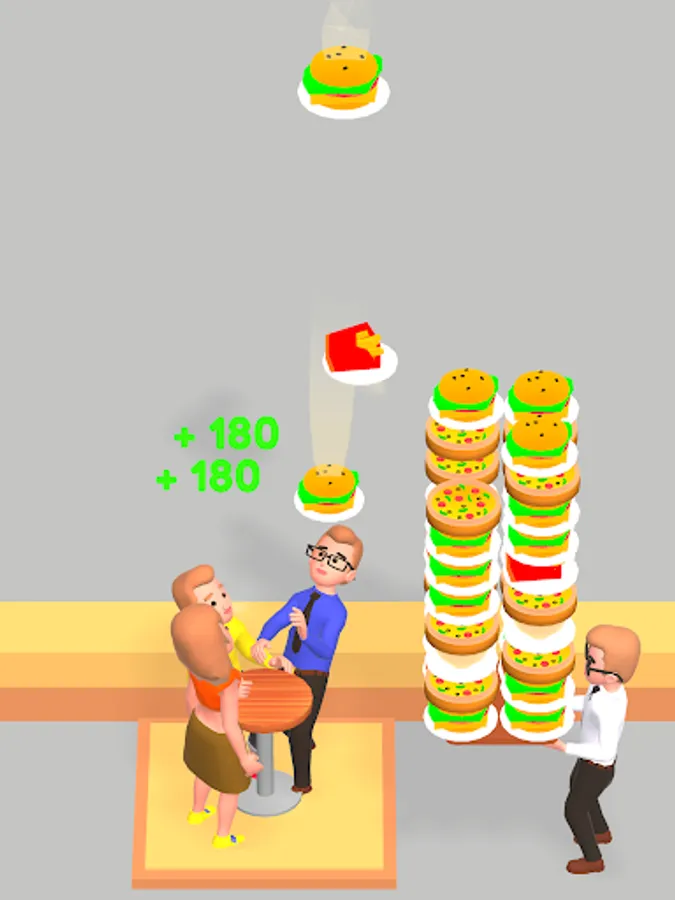Service Please! Customers are hungry. Quick! Slide across the customers, serve them various dishes, collect tips and money to expand your business. Careful with the plates now, they might get everywhere with your speed!