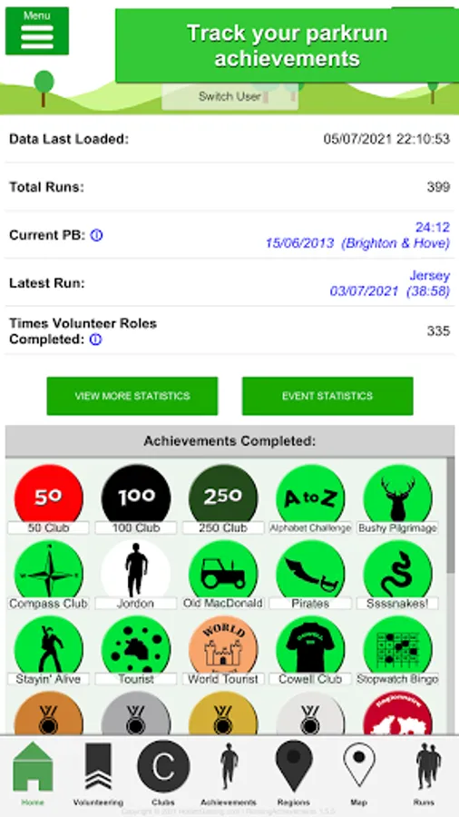Uses your parkrun athlete number to get stats on what achievements you have completed, how far you are from completing others and any new ones you might want to aim for.