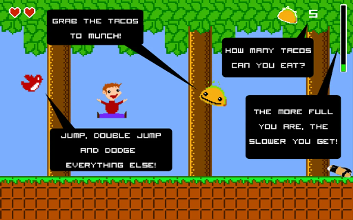 Open your mouth and close your eyes - it's raining tacos! Eat them up while dodging all the chaos! Can you last longer and gobble more tacos than your friends? Will you become the taco champ? Who will want to sit next to you in small enclosed spaces afterwards?! Only one way to find out.. play this super fun game!