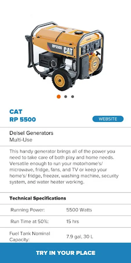 A comprehensive mobile AR catalogue app with multiple photorealistic 3D models to explore. With this app, users can see how the generators will fit, look, and match with their space.