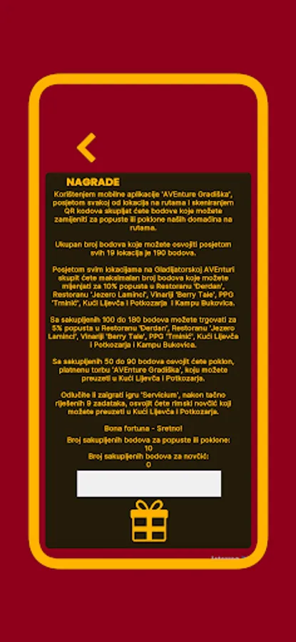 A mobile application - AR tourist guide AVEnture Gradiška - was also created, which connects all the mapped and marked with interpretive totem points on the route. The mobile application enables independent research of new tourist offers, routes in an interactive and educational way. By visiting the routes, by scanning the QR codes, visitors will be able to see 3D representations of the Service, Villa Rustica and the Roman quarry, and with the educational component and through the game, everyone will be able to collect Roman coins and obtain discounts or gifts from our providers of tourist and hospitality services on the route.