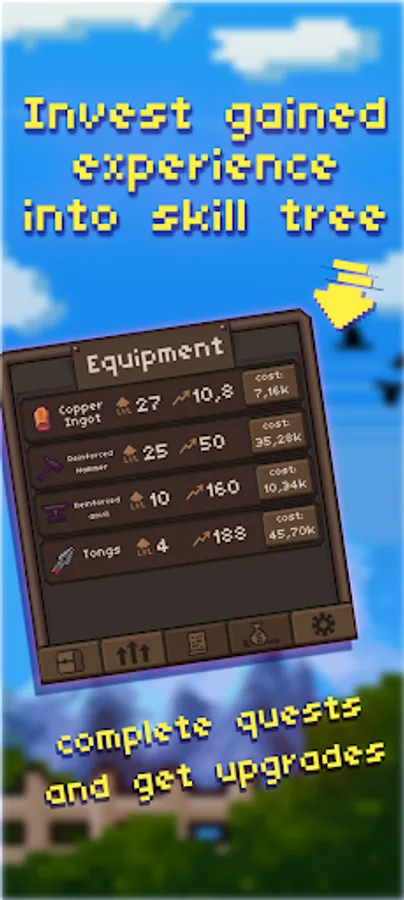 Active mode allows you to get clients and knowledge essential for further development. Fun minigames get you money to upgrade your forge and level up your tools. Hammer and anvil is a must in achieving your goals!