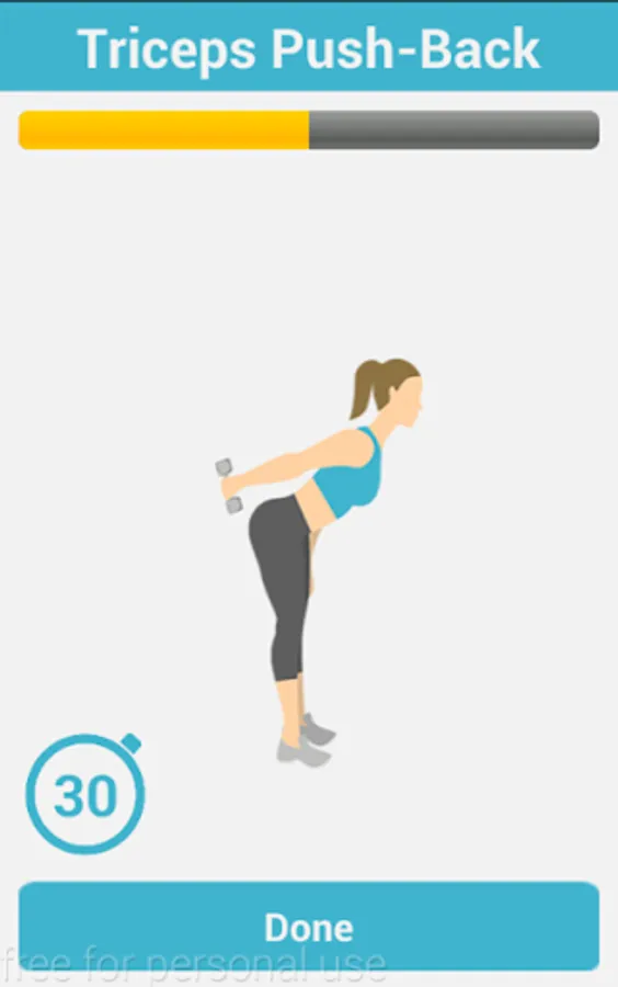 Women's Arm Exercises is a great 5 to 10 minute daily arm, chest and shoulder routine that steps you through some of the best upper body exercises you can do in the comfort of your own home. The routine's simple interface, complete with animation and timer, allows you to easily follow along and understand each exercise.