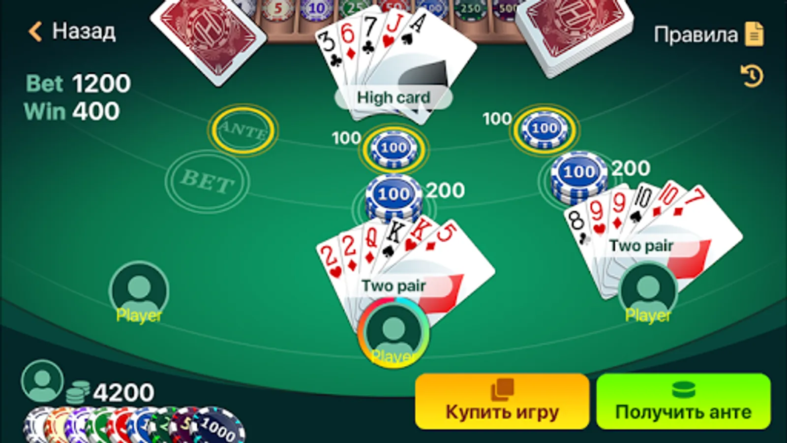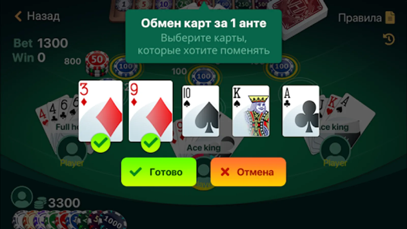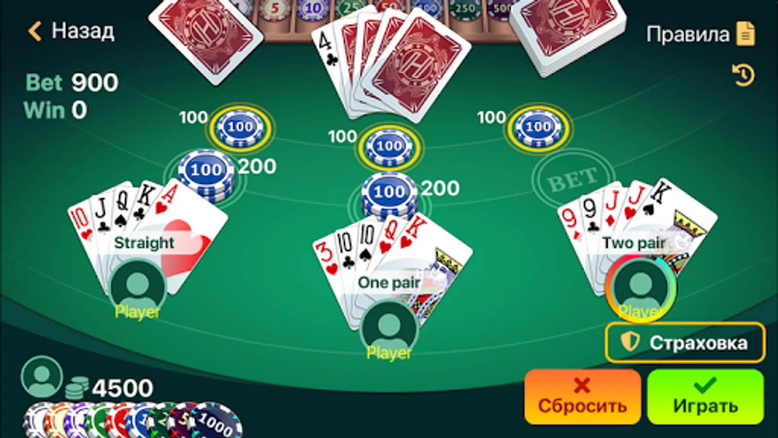 The HomeGames application offers users to plunge into the atmosphere of a real casino and feel the exciting excitement of the game. The simulator offers to play the Russian poker card game. Find a suitable room, sit down at a table that you like and you will find yourself next to other players from around the world.