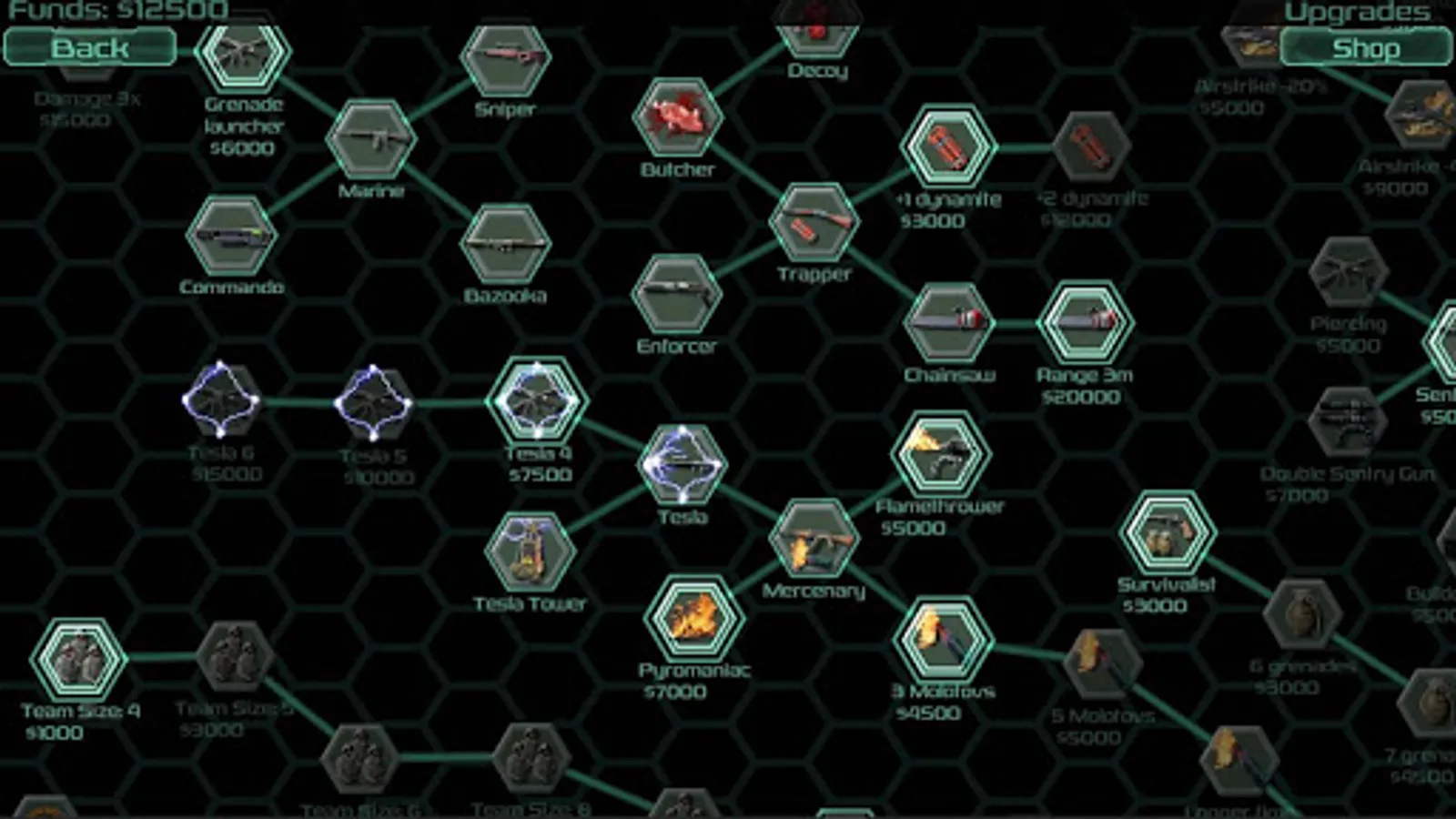 Earn money on missions and spend them between missions to buy permanent technologies, upgrades, weapons ect.