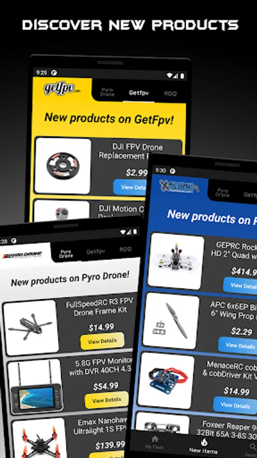 Stay up to date with all the new products from the three biggest fpv companies, Getfpv, RaceDayQuads, and Pyro Drone.