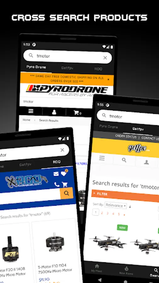 Cross search the big three fpv sites for any product for fast and efficient browsing.