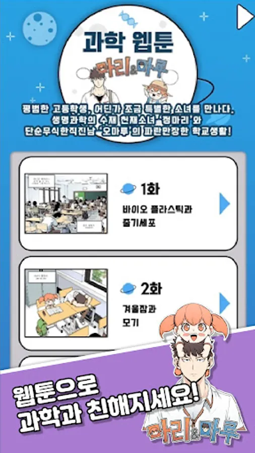 There are events that stand in the way between the two of them, but when Marie's story of biotechnology begins, the surroundings become peaceful. Can Marie, a biotechnology dreamer, achieve her dream of a Nobel Prize in Physiology? Can a biotechnology story add something special to Maru's boring daily life? Let's meet the story together with the two people's school life.