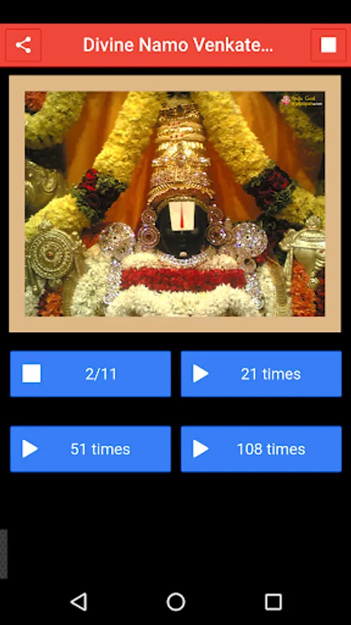 1. Auto repeat "OM Namo Venkatesaya" Mantra - 11 times, 21 times, 51 times, 108 times