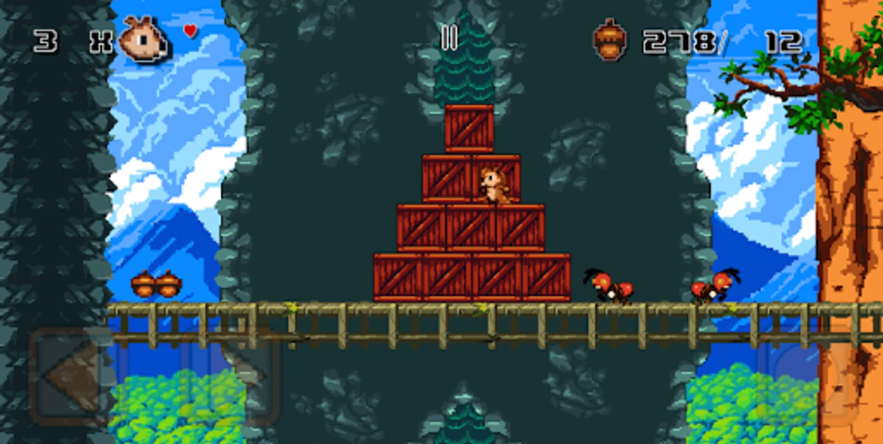 Chipy the squirrel 2d side-scrolling pixel platformer with lots of fun and secrets. Help Chipy get through all the traps and fill his supply of nuts for the winter. Chipy is complete in pixelart and a retro platformer like you know it from Amiga or C64 times.