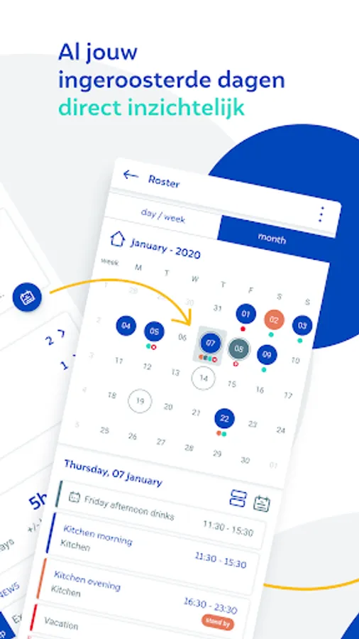 Our app has been updated and existing functionalities have been improved. With the renewed app from Horeko you can easily see when you have to work.