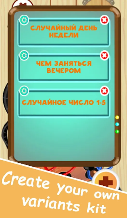Random generator. Random number, random name, random day, random movie, whatever. Load a set of random options into it, and it will choose one. For example where to go in the evening or what gift to buy.