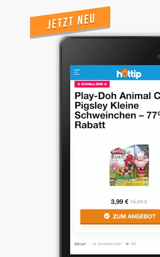 Lade dir jetzt die Hottip Schnäppchen-App herunter und habe sofort Zugriff auf unsere aktuellen Angebote, natürlich ganz ohne Anmeldung oder mühsamer Konfiguration. Einfach loslegen, tolle Schnäppchen finden und viel Geld sparen.