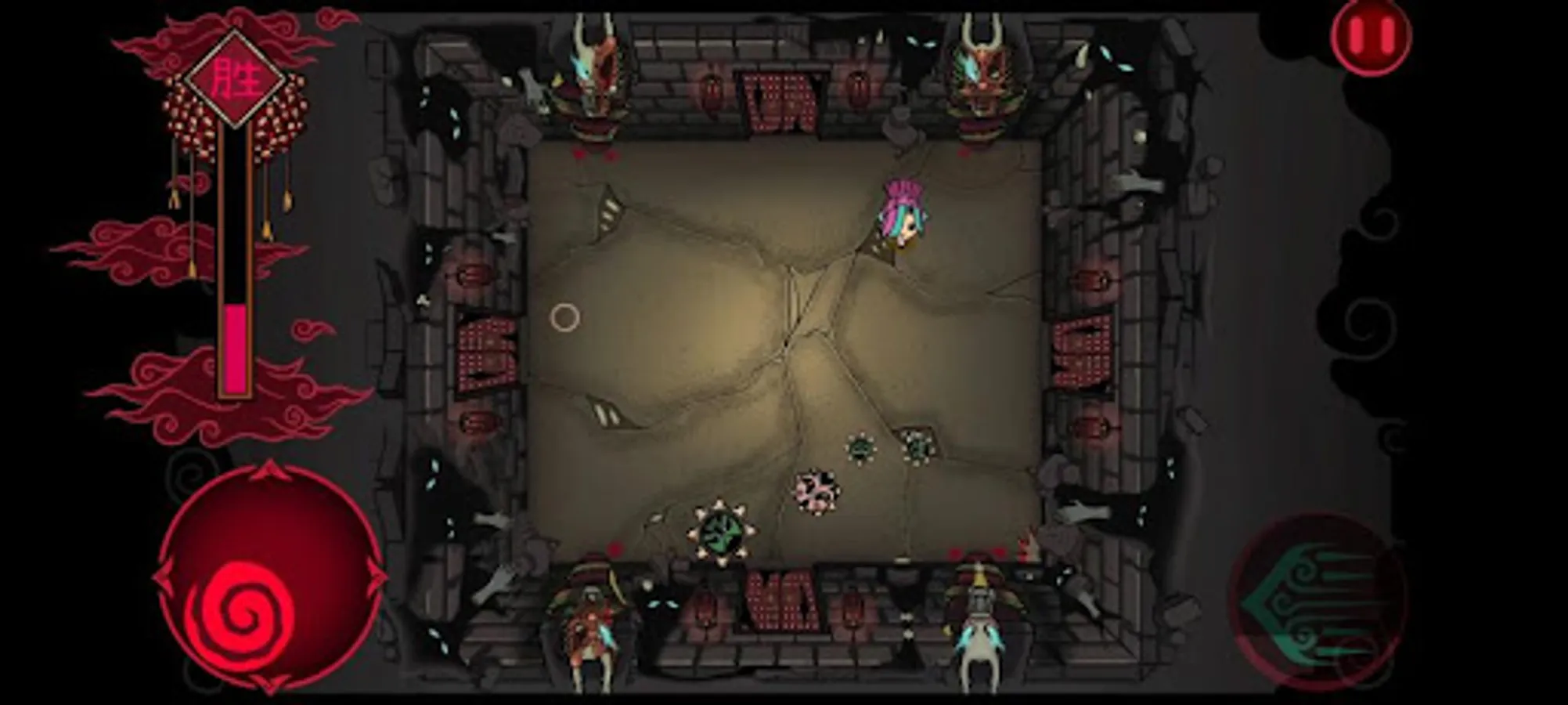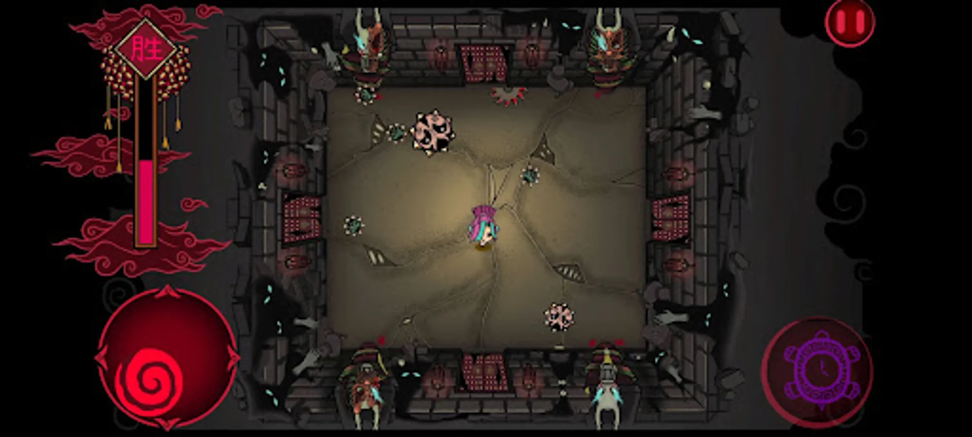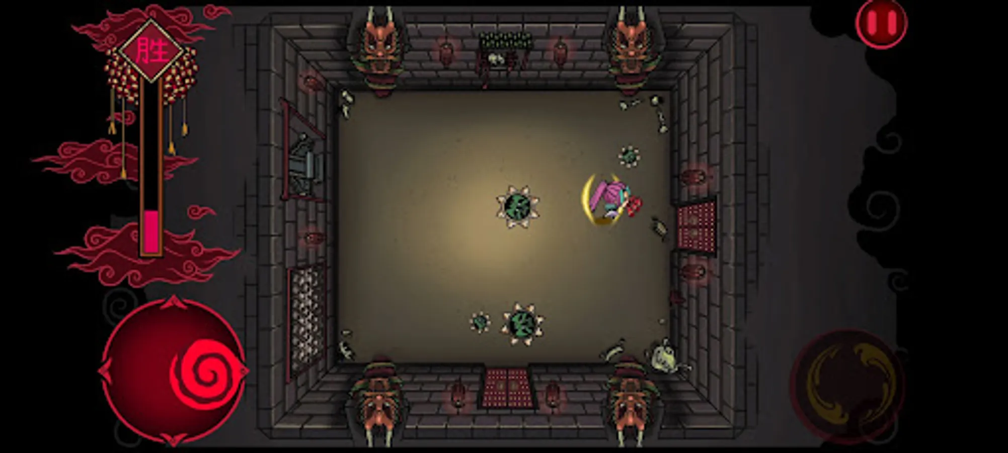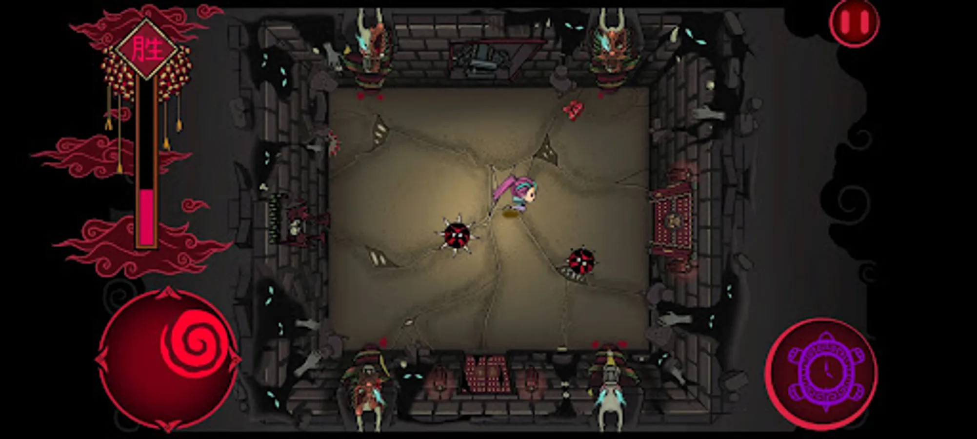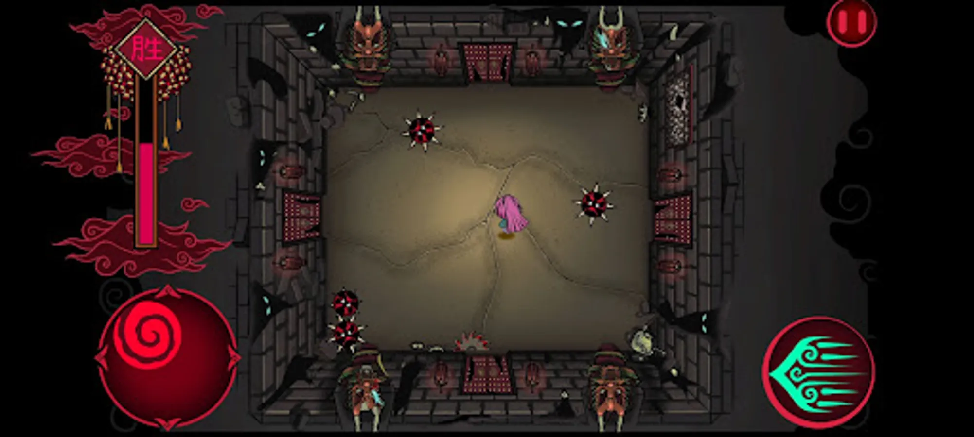To escape your own mental prison, you as a player have to navigate through the many rooms to find a way out. Be wary of the different enemies who would do everything in their power to make sure you don't escape. One hit and you are out! Fight the different bosses to earn new abilities that may come in handy later. Make sure to grab the firecrackers on the ground. Once you have enough firecrackers a matchstick would spawn in the centre of the room, grab it and with a big BANG chase away your demons!