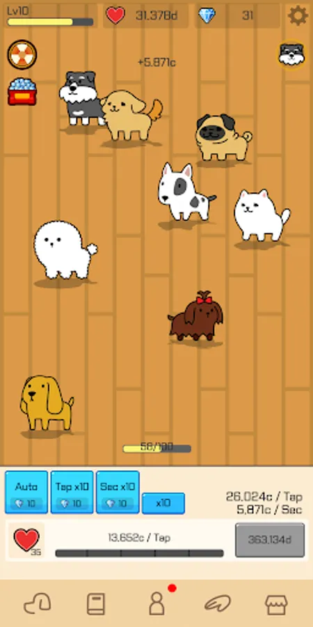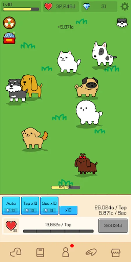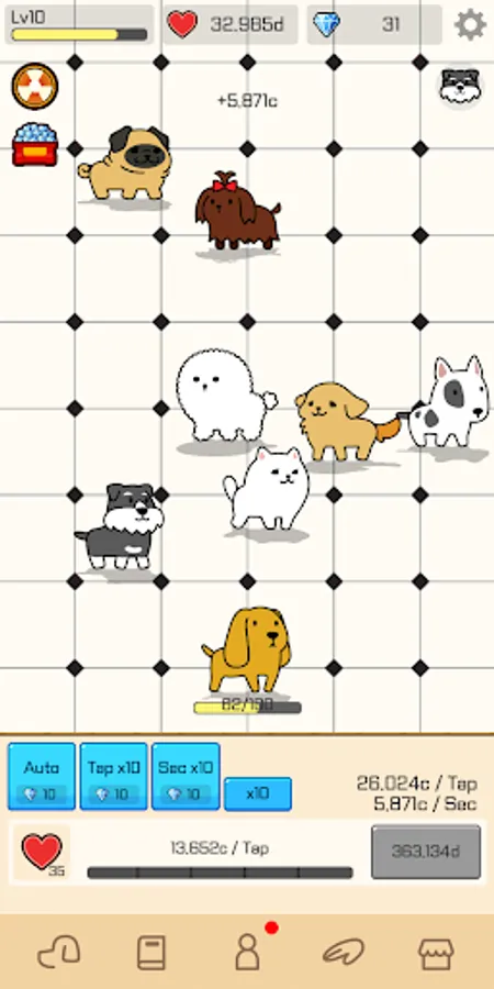 -Obtaining dog supplies from the treasure chest increases the profit per tap.