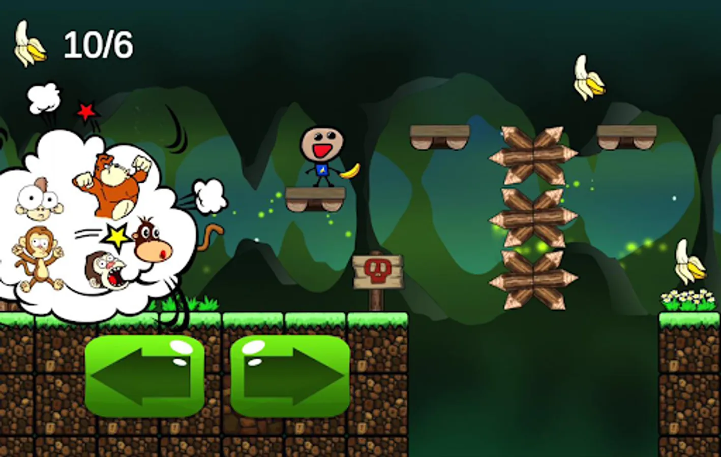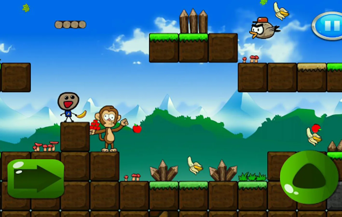 go adventure in the cave and under the water and in top of mountain to escaped from monkeys