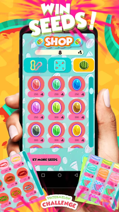 Unlock Skins for your Watermelon, Rubbers and Background!