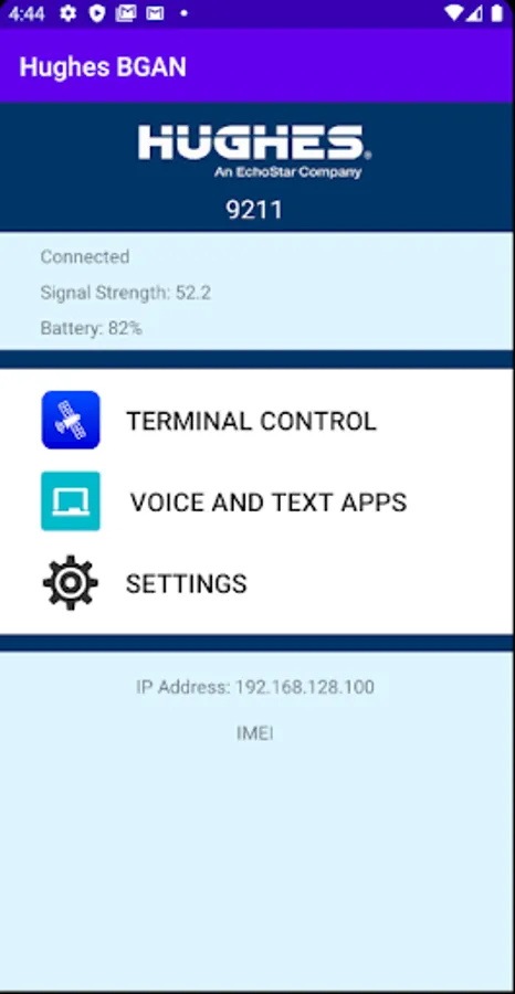 This app allows you to quickly view the battery life, connection status and strength of your terminal. You can also edit settings of your terminal from the app such as the IP Address. Lastly, you have quick access to voice and text applications.