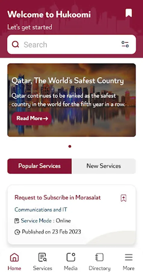 - Access latest news of government entities in Qatar, information and e-services through a unified directory search.