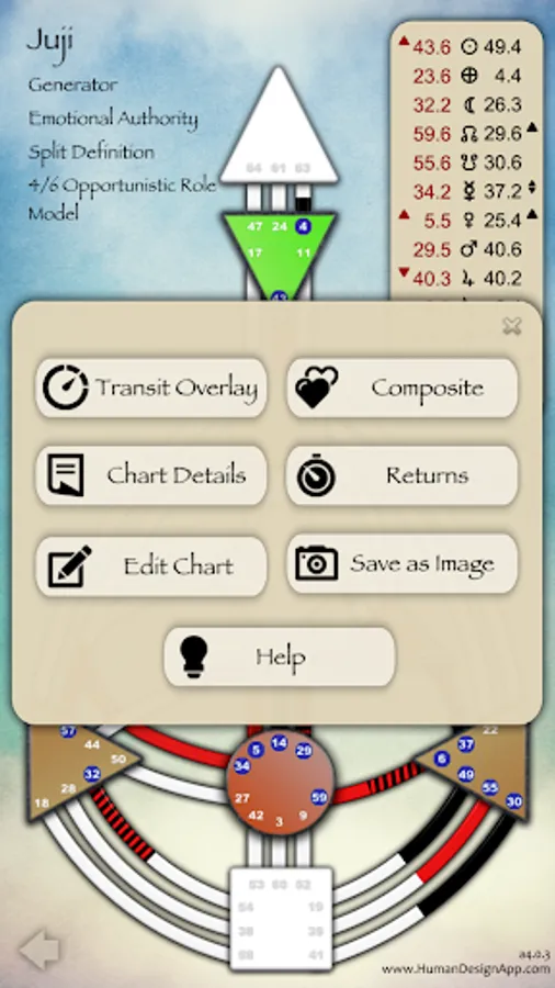 Human Design App is the premium Human Design app for Android devices. Create natal charts, look at current transits, explore composite and return charts.