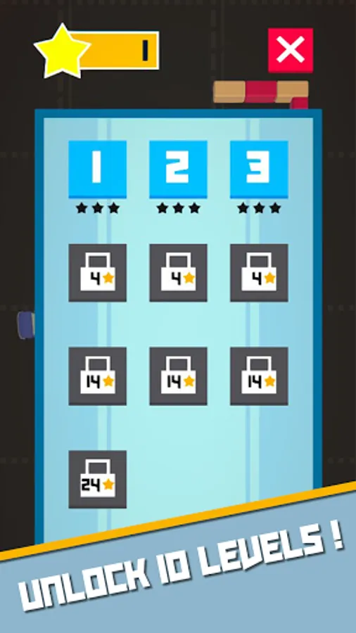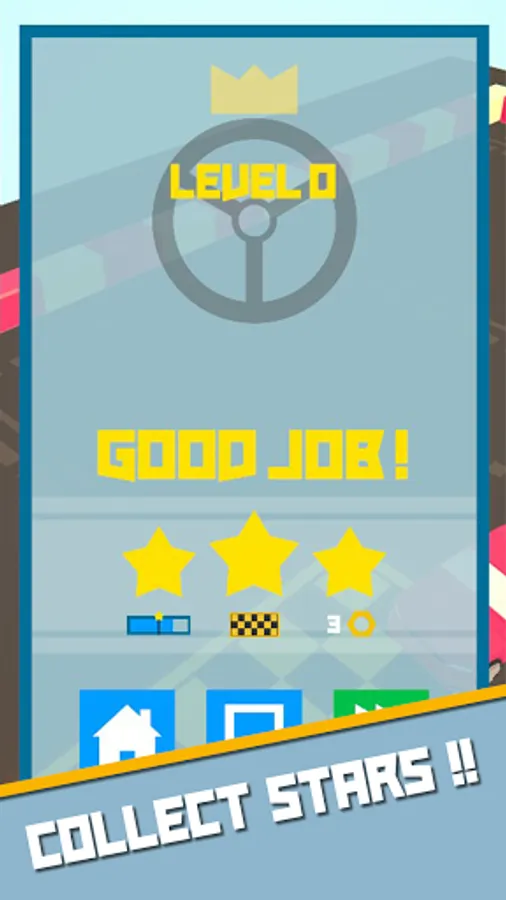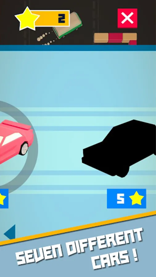 10 niveaux et 7 voitures différentes peuvent être débloqués lorsque certains paliers d’étoiles sont atteints.
