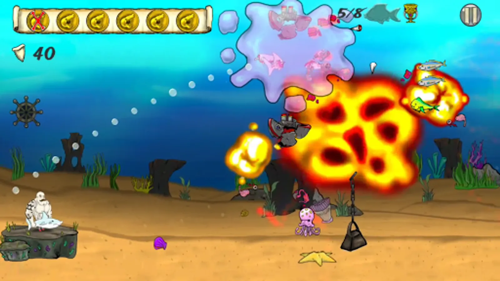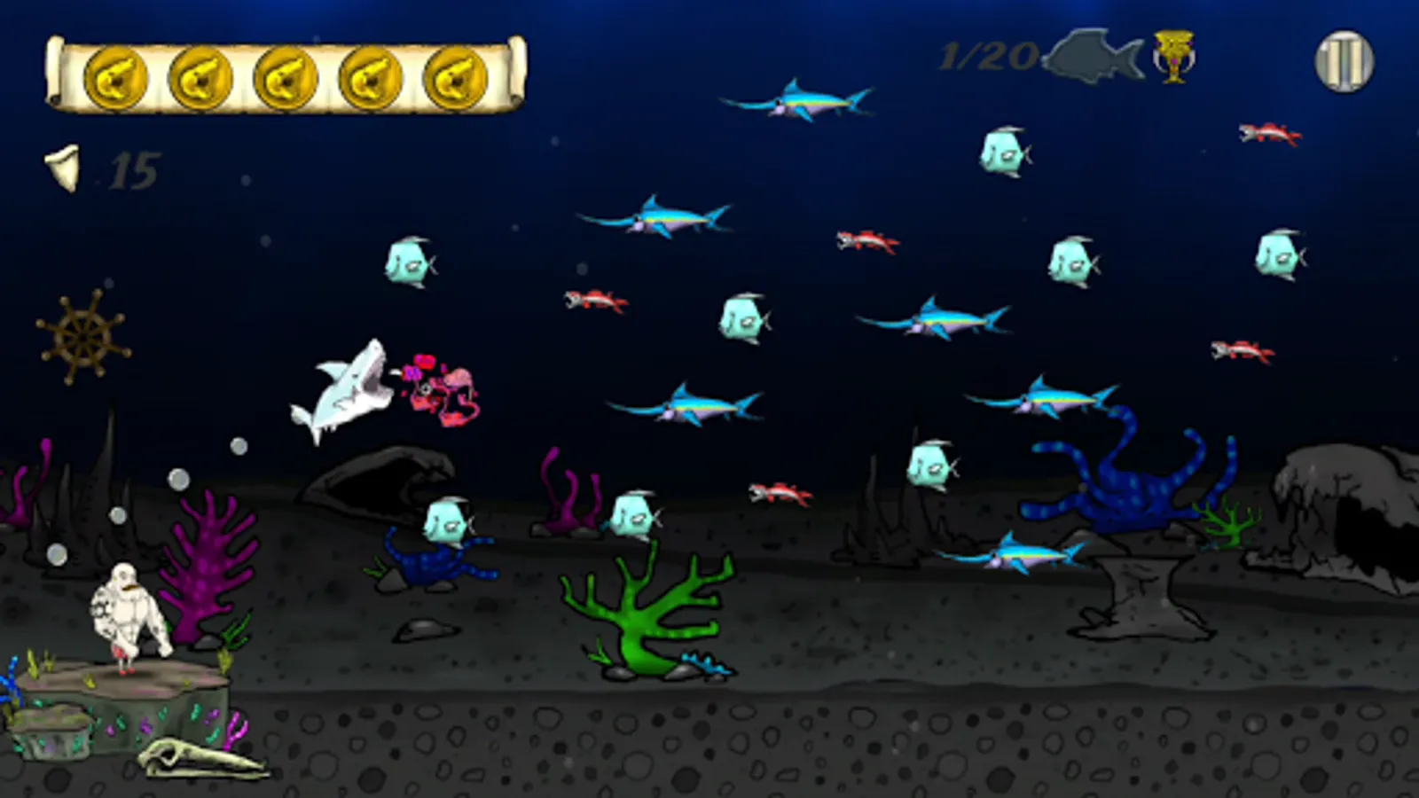 Shark Thrower is a, action puzzle game featuring ravenously hungry sharks, unfortunately unaware fish, challenging obstacles and a burly sailor (or sailorette) with a penchant for throwing things; especially sharks. Carefully assess each level before hucking your sharks across the sea at unsuspecting fish while avoiding obstacles like the shipwreck and deep sea mine. Use the unique abilities of each shark to clear straight lines with the Bull Shark, and disarm obstacles with the Hammerhead, and take advantage of various helpers on each level to make your limited number of sharks deal more carnage. But, watch out: not everything is helpful!
