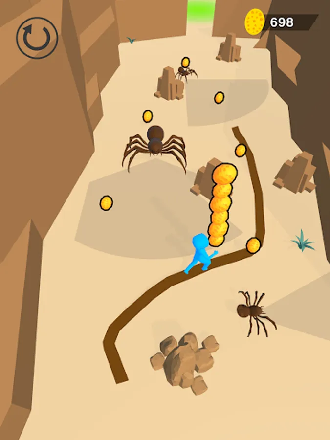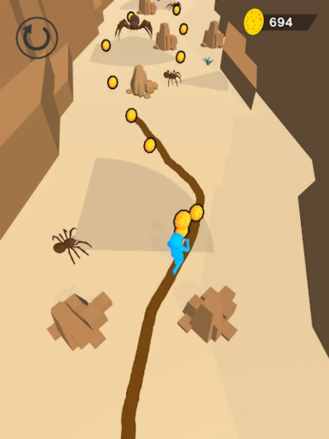 In this unique puzzle game, your goal is to navigate through the spider's lair, stealing their eggs without getting caught. The movement is by drawing your own path, you'll need to be strategic and careful as you avoid the spiders and their webs.